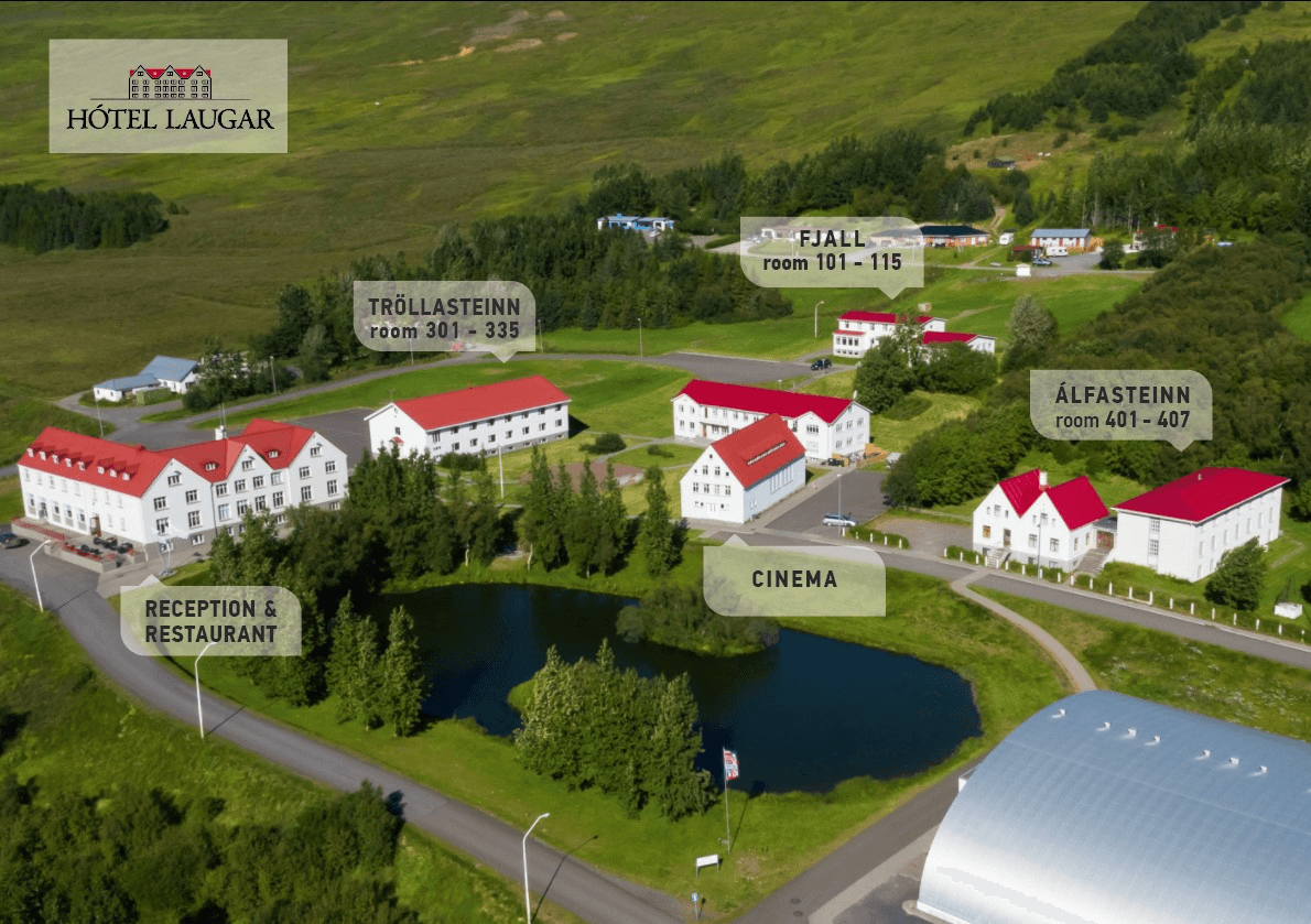Laugar is the gateway to some of the country's most spectacular natural attractions, such as Lake MyÌvatn, Ásbyrgi Canyon and the waterfalls, Góðafoss and Dettifoss. Hotel Laugar is in the peaceful rural surroundings of the Reykjadalur valley at the crossroads of North East Iceland. Only a short drive away from Akureyri (60 km), Husavík (40 km) and Lake Mývatn (30 km).